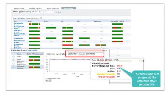 If you have a network analysis module (NAM) deployed, you can integrate it with Prime to do in-depth traffic analysis. You will get granular insight of your network and application performance. The chart below shows such an example.