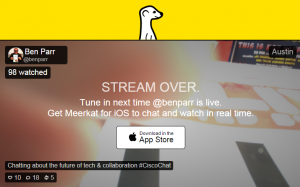 Hosted by the Cisco Collaboration team live from the SXSW Interactive Festival, this #CiscoChat asked conference attendees how they work to increase productivity and disrupt traditional collaboration methods for real-time flexibility on the go in advance of the announcement around our new collaboration service, Cisco Spark. We also leveraged innovative new social platforms, such as Meerkat, to extend the conversation. #CiscoChat broke through the sheer amount of online buzz during SXSW, trending locally in Austin on Twitter during the event. See the full #CiscoChat recap on Storify.