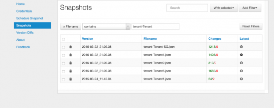 Rollback Feature: Rollback is allowed to any previous configuration version and can be done as a full configuration rollback or as granular as per tenant. This enables certain tenants to be rolled back to previous configs, while certain others get to keep their current configs. All config files are readable and open JSON formatted text files. The Open interfaces of ACI enables easy integration of this "snapback" tool with third-party systems to develop integrated operations-focused solutions as it can be imported as a library, run from the OS command shell, or run as a web application.