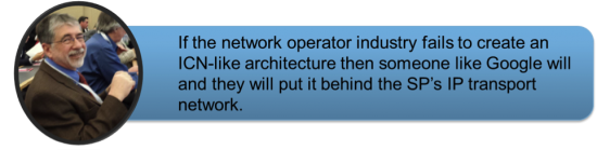 Paul closed with the observation that if the network operator industry fails to create an ICN-like architecture that someone like Google will and put it behind the SP's IP transport network.