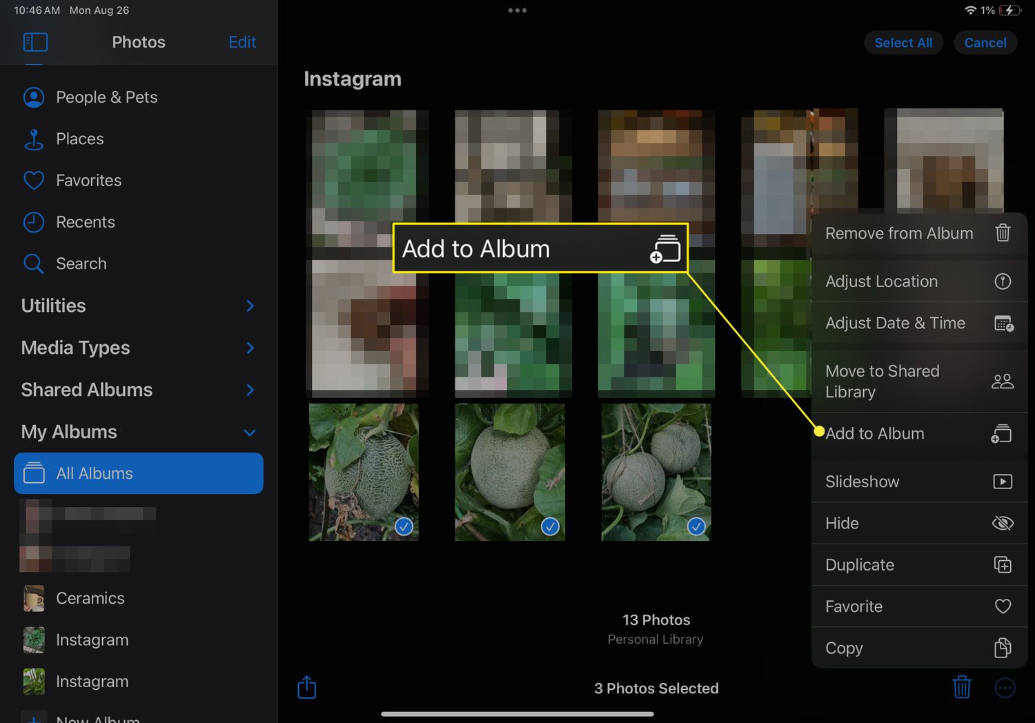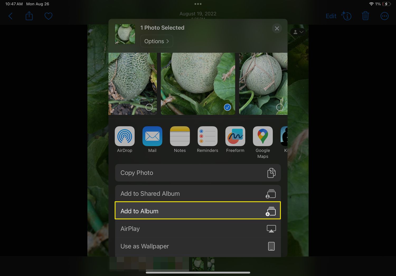 In the menu that appears, tap Add to Album.