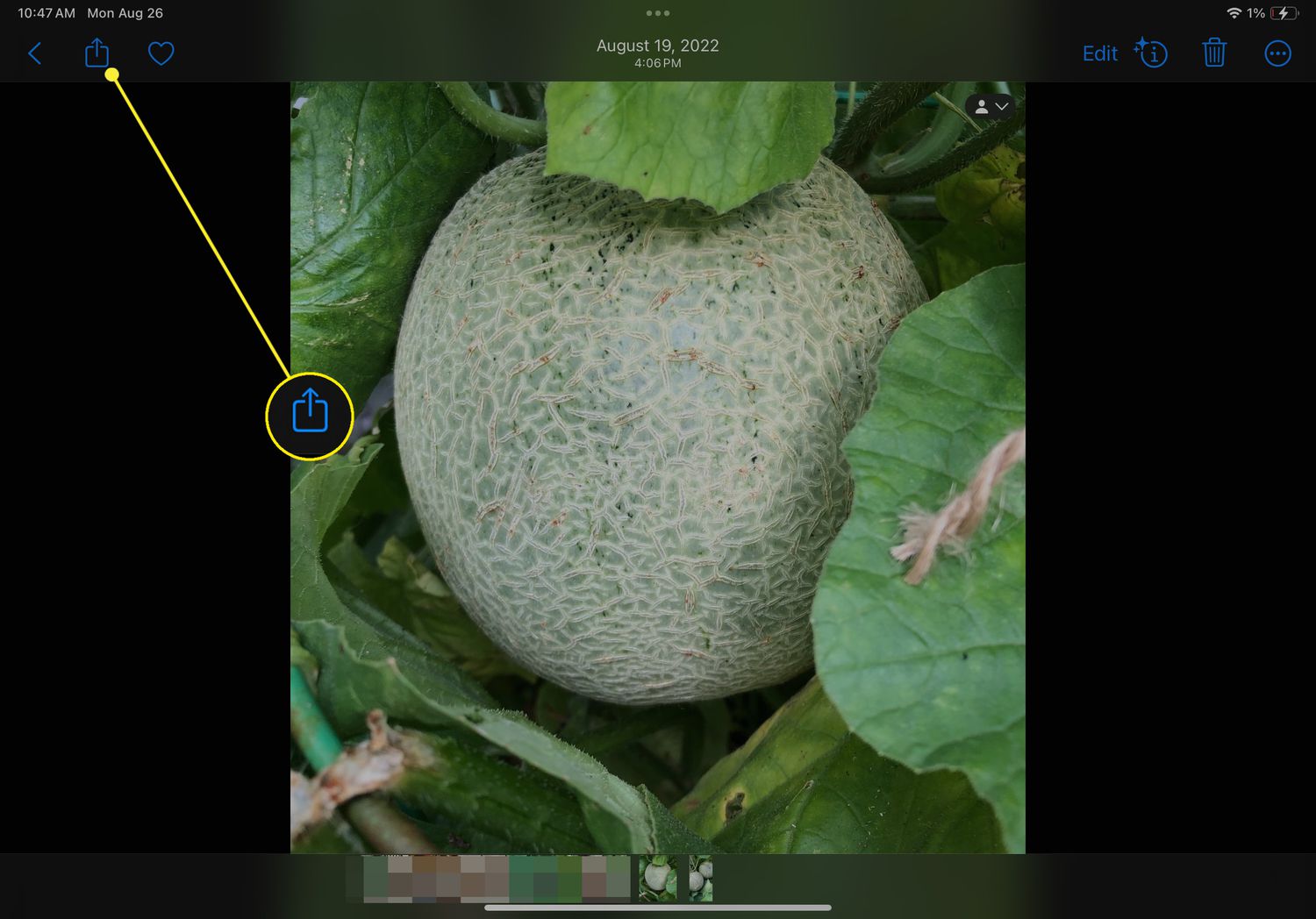 Tap a photo in the Photos app to view it full-screen.