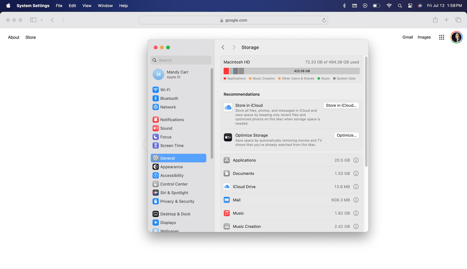 - Click Apple logo > System Settings > General > Storage to optimize your storage.