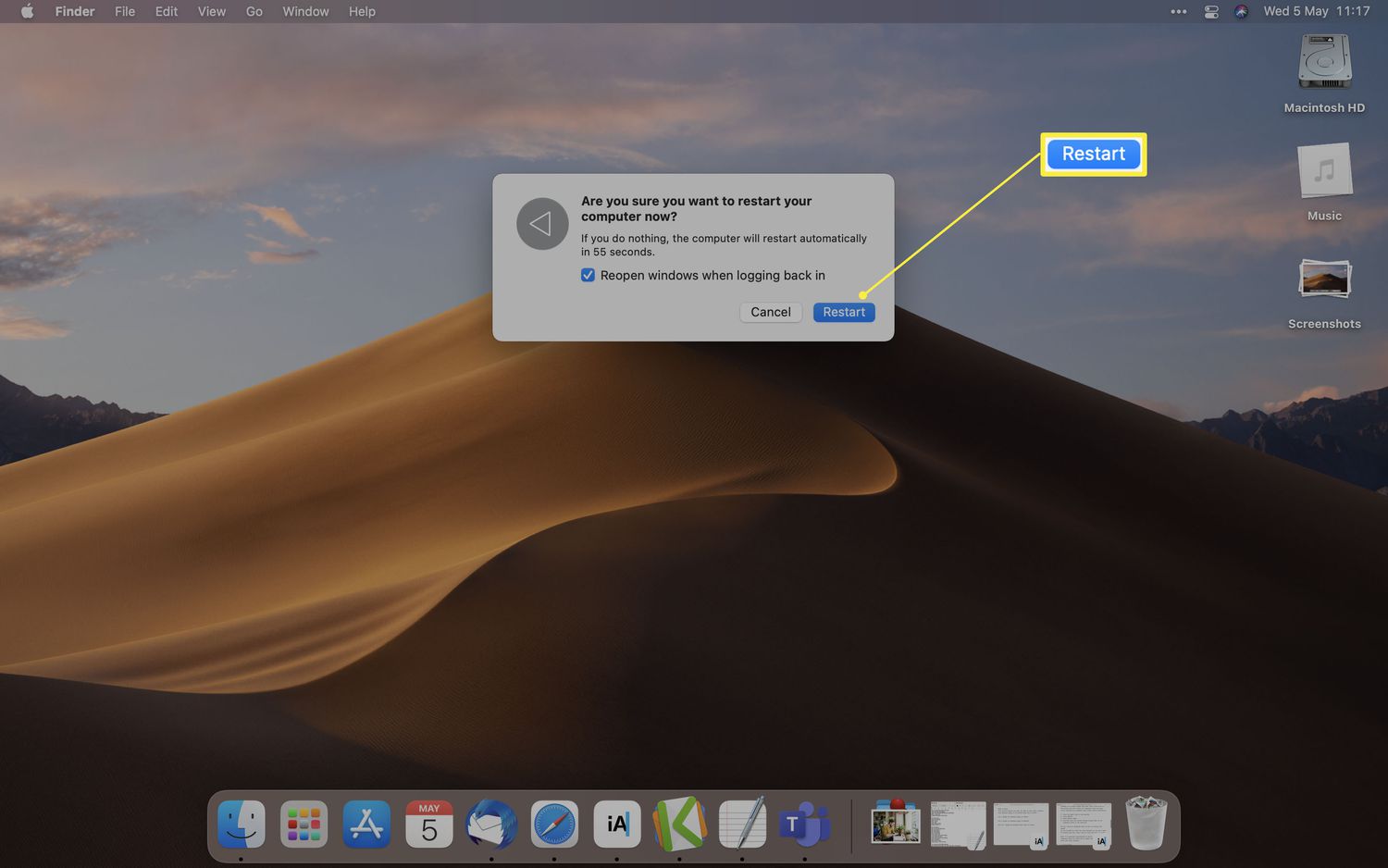 Your Mac will now restart having cleared many of its temporary files in the meantime.