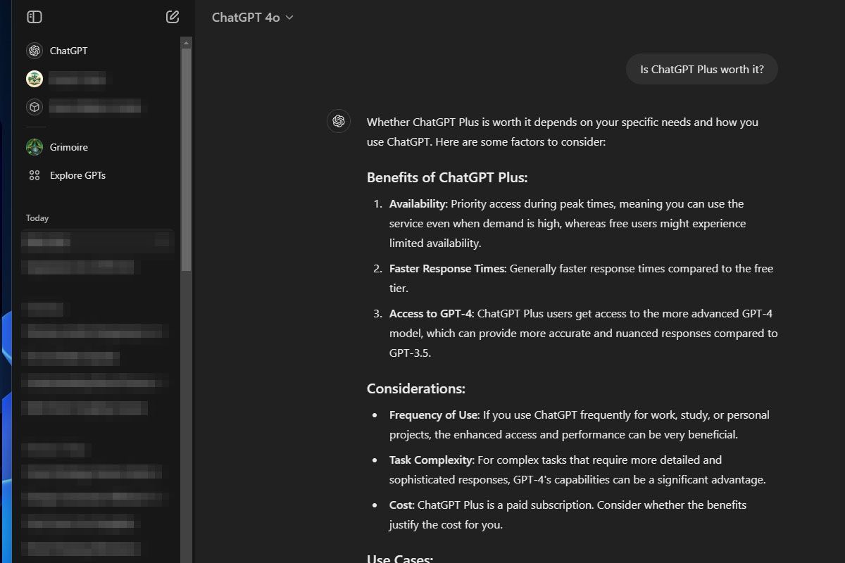 ChatGPT Plus is great for heavy ChatGPT users and those who want the latest features. Consider subscribing if you: