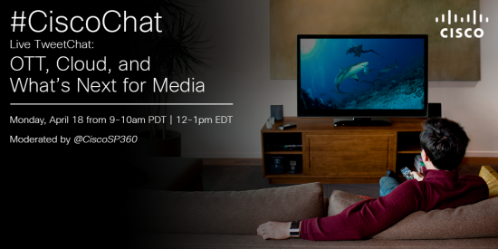 Joining us for this special #CiscoChat discussion will be Multichannel News tech columnist Leslie Ellis (@LeslieEllisEdit), Infinite Video Product Marketing Manager Adam Davies (@DaviesTheTech), Senior Business Development and Digital Media Strategist Tom Ohanian (@tomohanian), and Cisco's own Senior Director of Cloud Solutions, Rajeev Raman (@rajeevrcisco). With their insight leading the discussion, we'll explore some of the implications for media companies of the growing transition from traditional platforms to OTT viewing, and how it relates to the NAB Show and beyond.