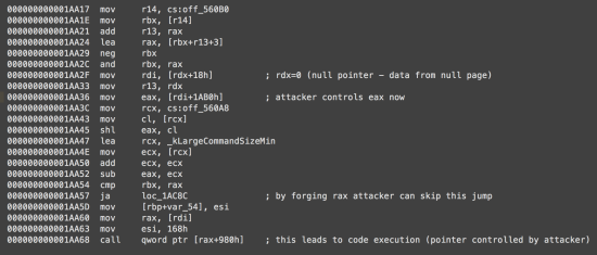 There is a local privilege escalation vulnerability in the Apple Intel HD3000 Graphics kernel driver (TALOS-2015-0088/CVE-2016-1743) which Talos has identified on OS X 10.11. Exploitation of this vulnerability requires user interaction, such as executing a malicious executable received via email or downloaded and run on the user's Mac. With OS X becoming more common in the workplace this can be especially impactful as the common user accounts often do not have root-level permissions.