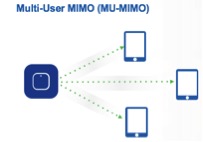 • Multi User, Multiple Input Multiple Output (MU-MIMO) -Supporting three spatial streams, MU-MIMO enables access points to split spatial streams between client devices, to maximize throughput. MU-MIMO provides up to a 1.9% increase in overall performance efficiency.