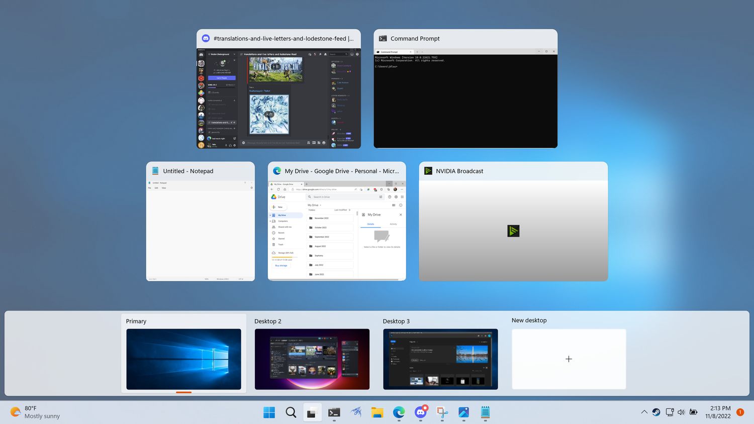 This article explains how to use multiple desktops in Windows 11, including how to view and switch between virtual desktops, customize virtual desktops, and use the same app on multiple desktops.