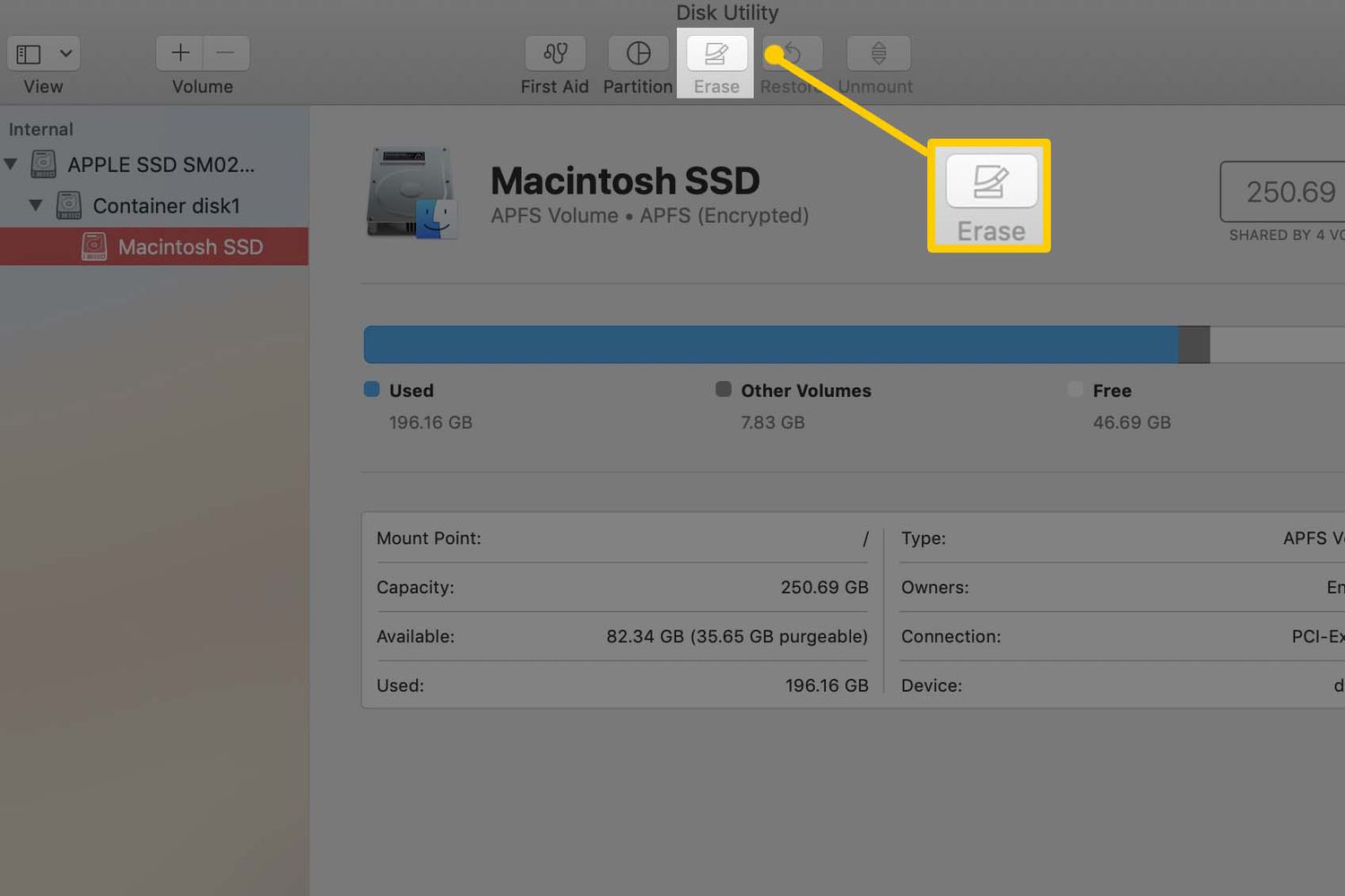 Once your drive is selected, select Erase.