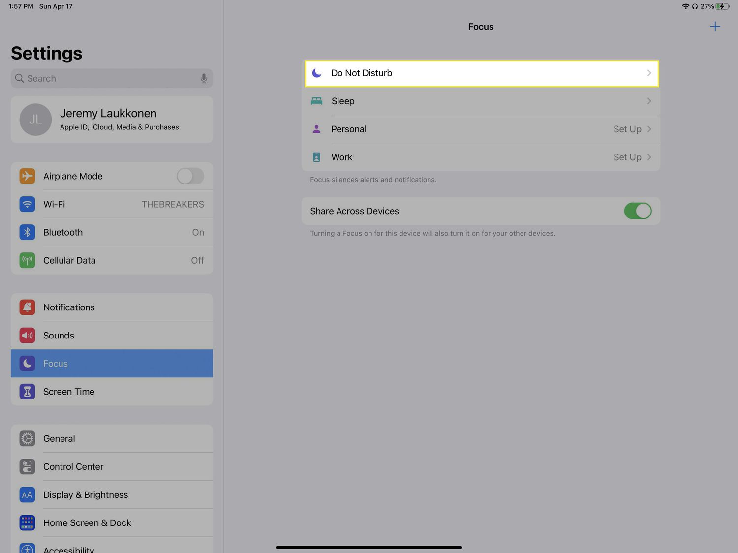 Do Not Disturb can be enabled on your iPad through the Settings app, the Control Center, or even from your iPhone.