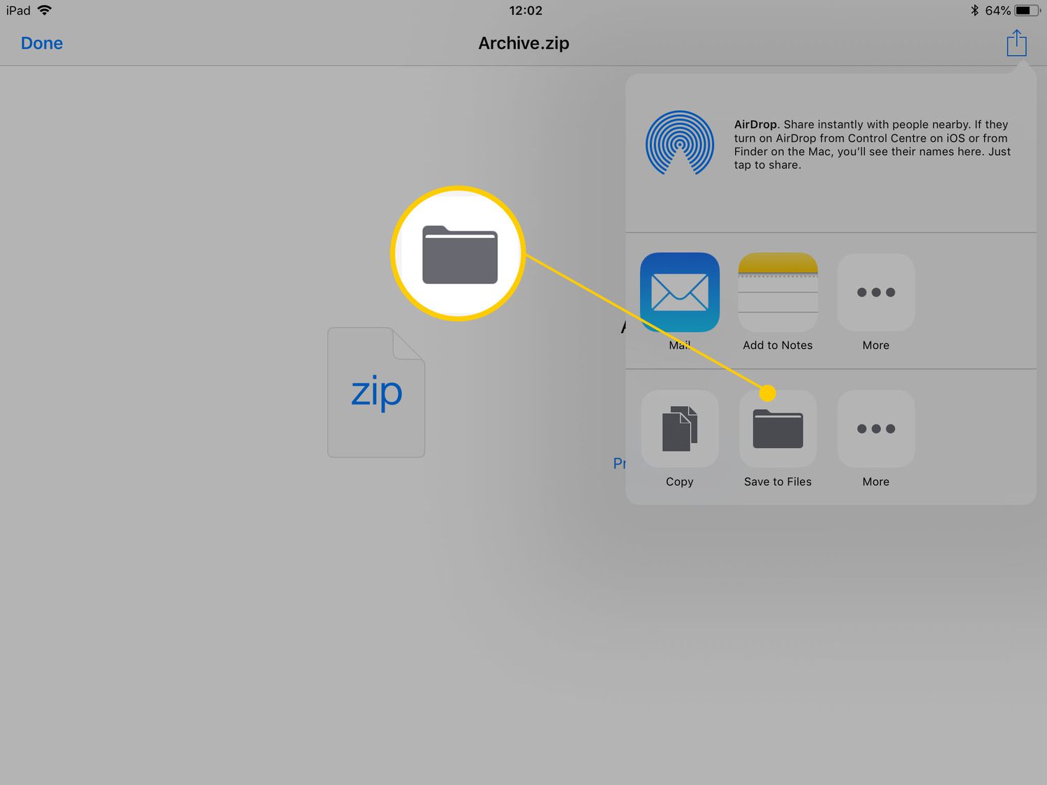 If you tap Save to Files, choose to either save the file to your iCloud Drive or directly to the iPad, then tap Add.