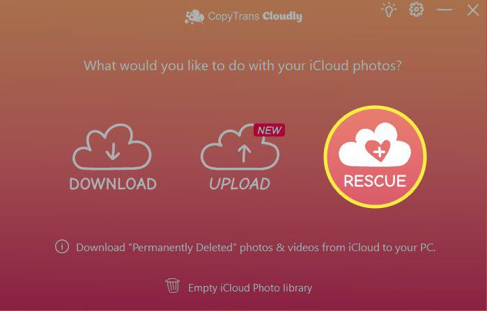 Select Rescue. Many third-party data recovery programs like this can also download your photos from iCloud.