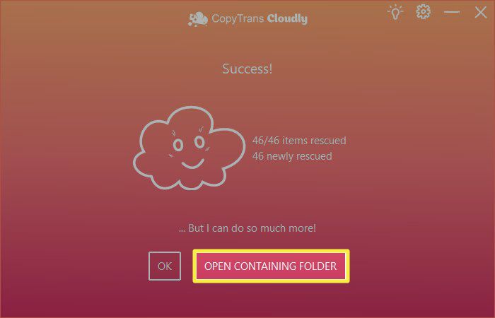 Select Open Containing Folder to check your photos. If the program was unable to recover your photos from the iCloud Photo Library, they have been permanently deleted and cannot be recovered.