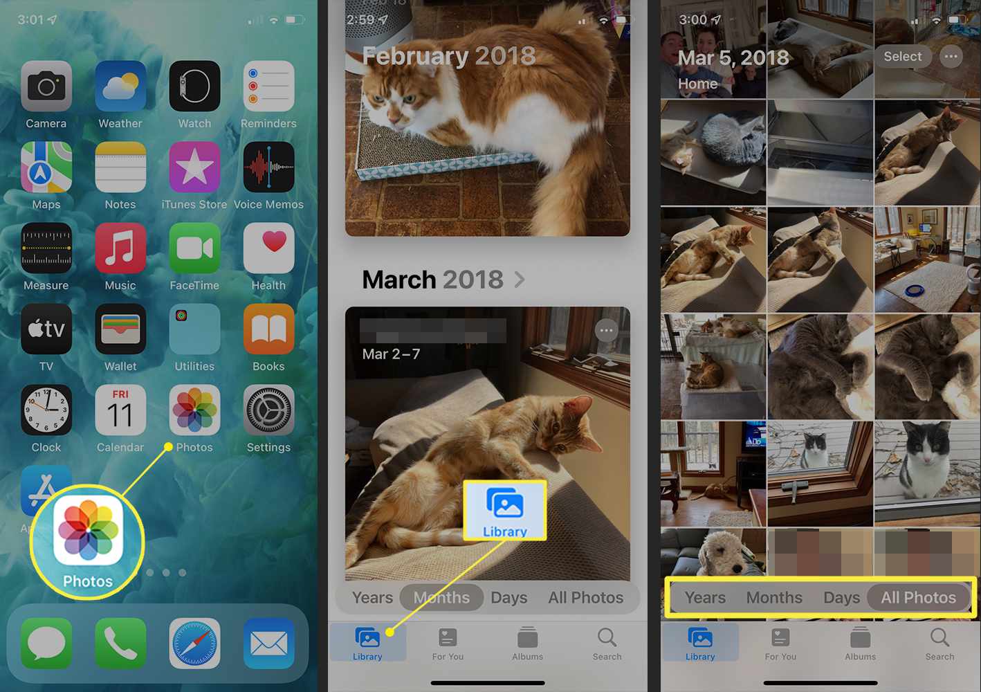 - iOS/Android: Turn on iCloud > tap Photos > Library; Go to iCloud website > tap Photos.