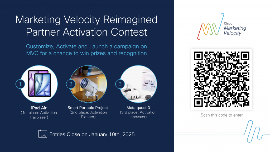 - Marketing Velocity Learning (MVL) -a simplified partner learning experience will get even simpler. Upcoming enhancements will further empower partners to create effective campaigns. Resources for co-marketing with Cisco will speed up campaign adoption.