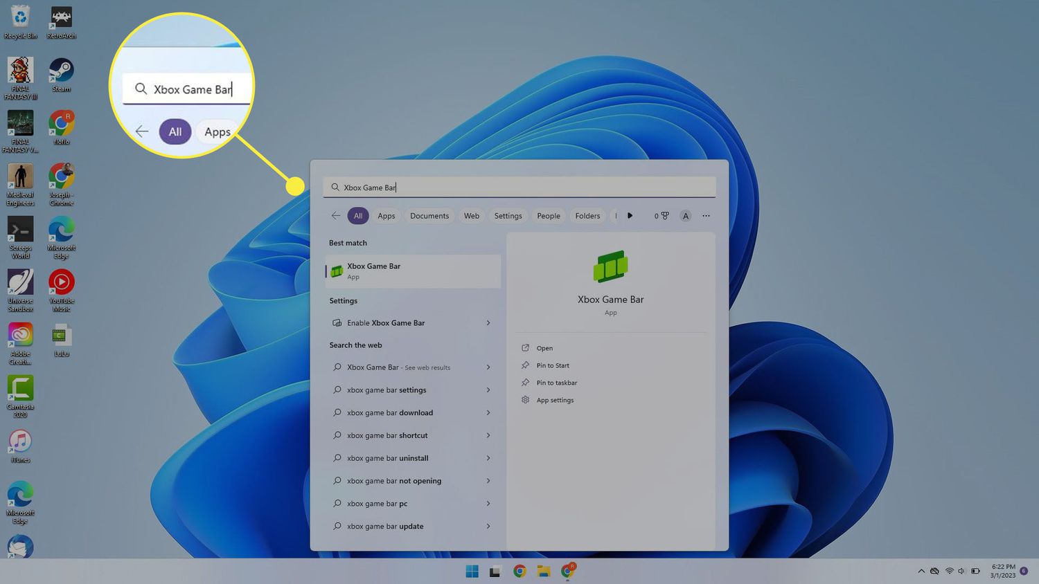 On your keyboard, press the Win+G, or search for Game Bar and open the app.