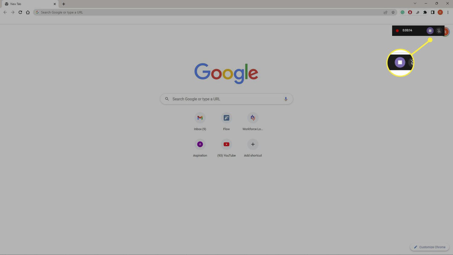 A window with a timer will appear in the upper-right corner of your screen indicating that it's being recorded. When you're finished recording, select the Stop icon.
