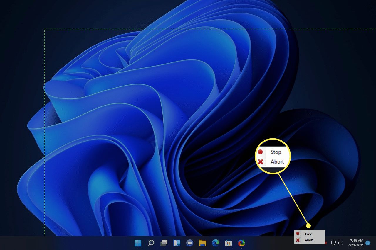 A red dot will appear in the Windows taskbar indicating that the screen is being recorded. When you're finished recording, right-click the red dot and select Stop.