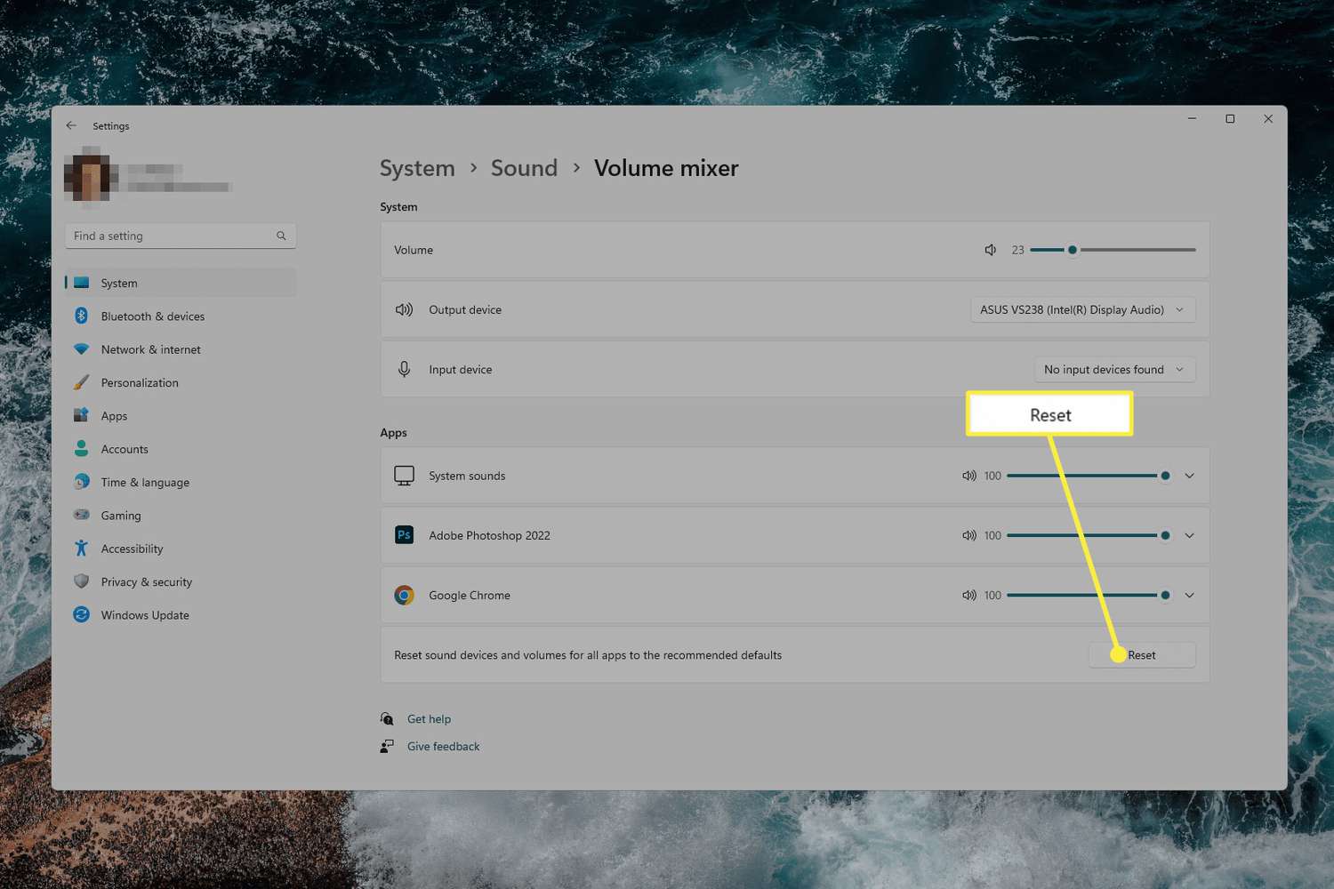 - Reset volume levels: Settings > System > Sound > Volume mixer > Reset.