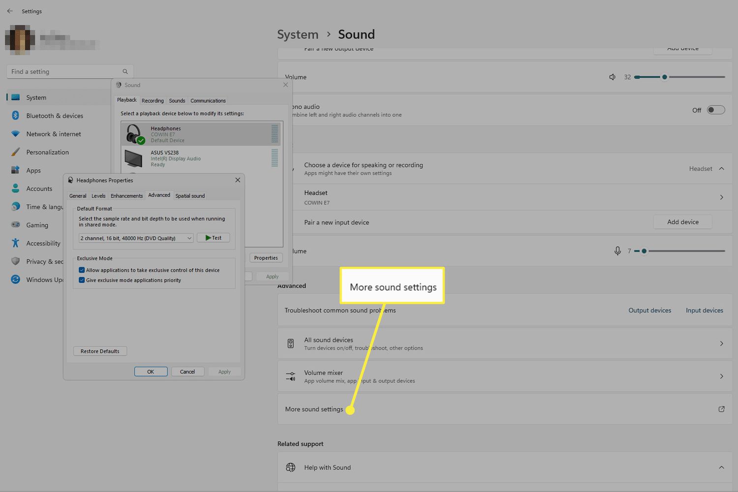 As the above directions show, all the Windows 11 sound settings are accessible through the Settings app. You can get there in a few ways: