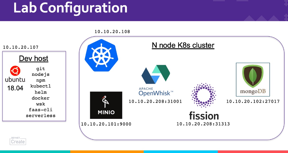If you've ever wanted to learn the fundamentals of serverless and get your hands dirty building a LAMP-like application, DevNet Create has a session for you. On both April 24 and April 25 from 11:45a to 12:30p, I'll be running an exercise entitled "FONK: FaaS on K8s working examples." During our 45 minutes together, we'll build a serverless version of the Guestbook application, which is the "Hello World" of the Kubernetes (K8s) community. Only instead of using containers directly the way that the original Guestbook does, we'll use a Function-as-a-Service (FaaS) runtime, an Object Storage service, and a NoSQL server all running on top of K8s.