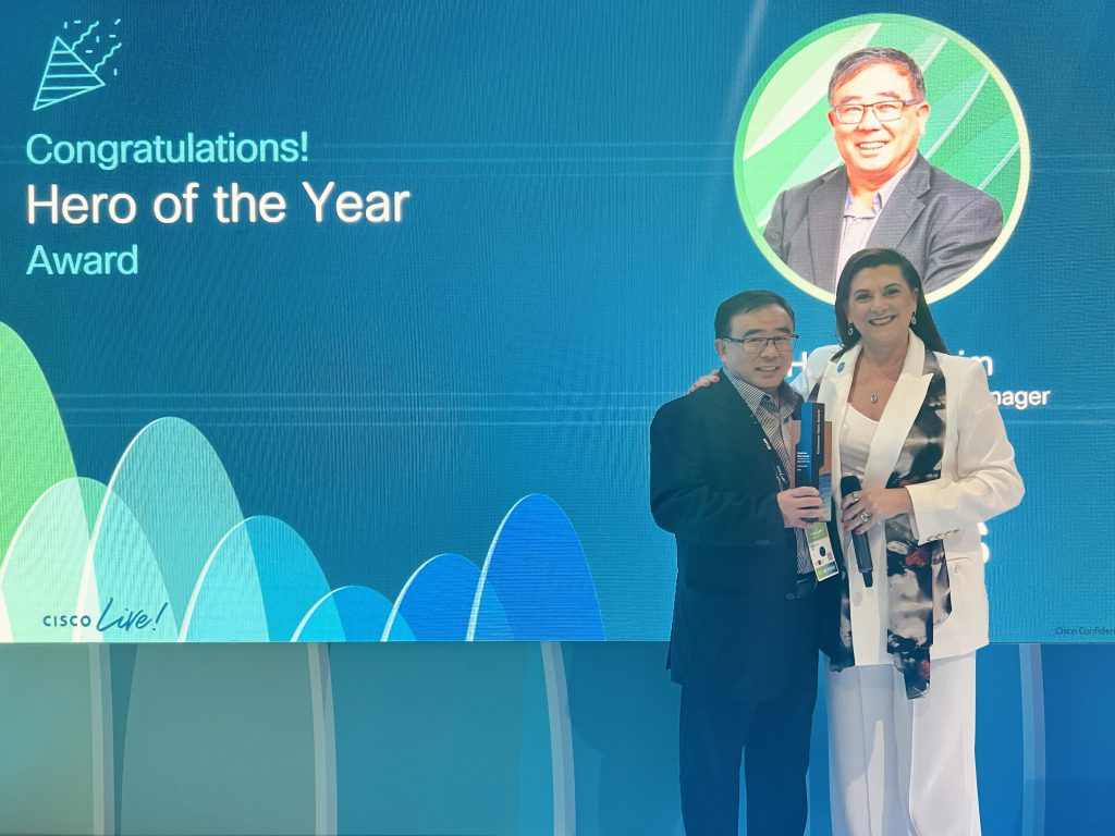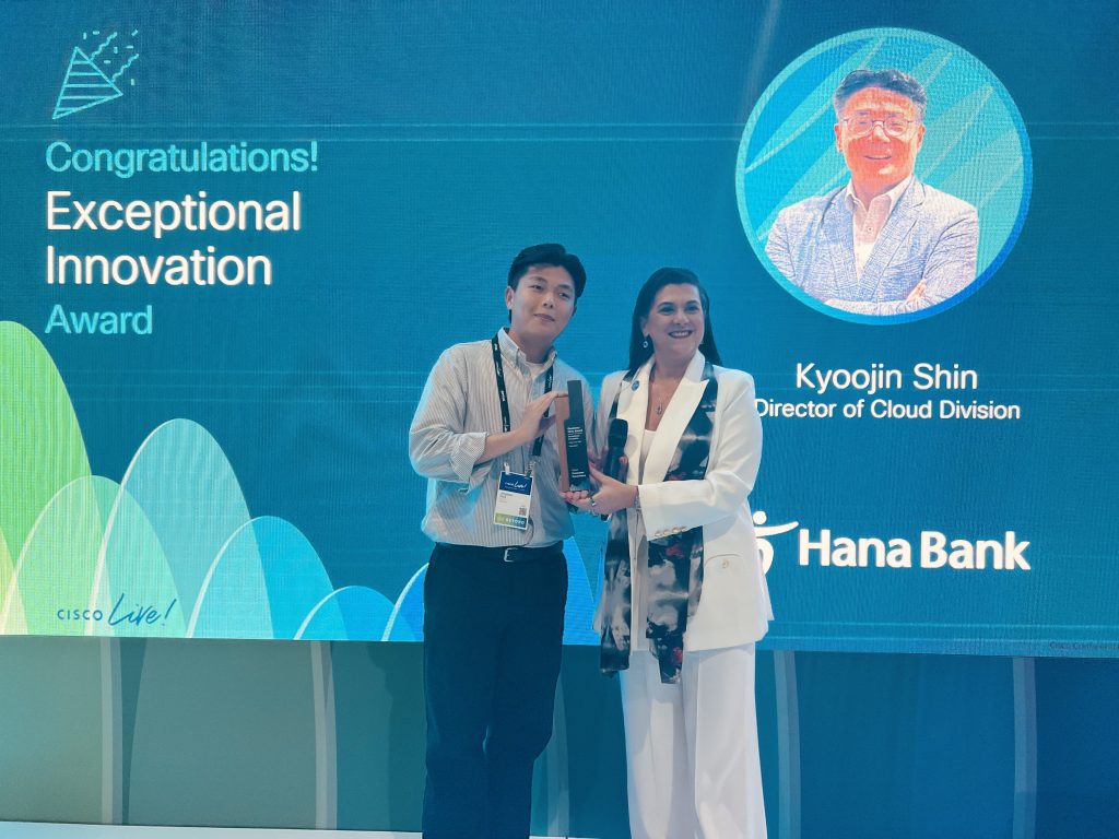 The Exceptional Innovation Award is for a Cisco customer who achieved amazing innovations through collaboration with Cisco CX. This year's winner is Hana Bank, who ranked number one in customer experience and revenue in 2024 while providing innovative digital platforms to provide reliable financial services 365 days per year. Kyoojin Shin, Director of Cloud Division, and his team worked with Cisco Customer Experience and achieved 100 percent of their initial digital transformation objectives within one year, including SDN conversion and data center expansion. In addition, they succeeded in accelerating their next migration project by one full year, all while automating multiple major changes and increasing their overall work efficiency by 50 percent.
