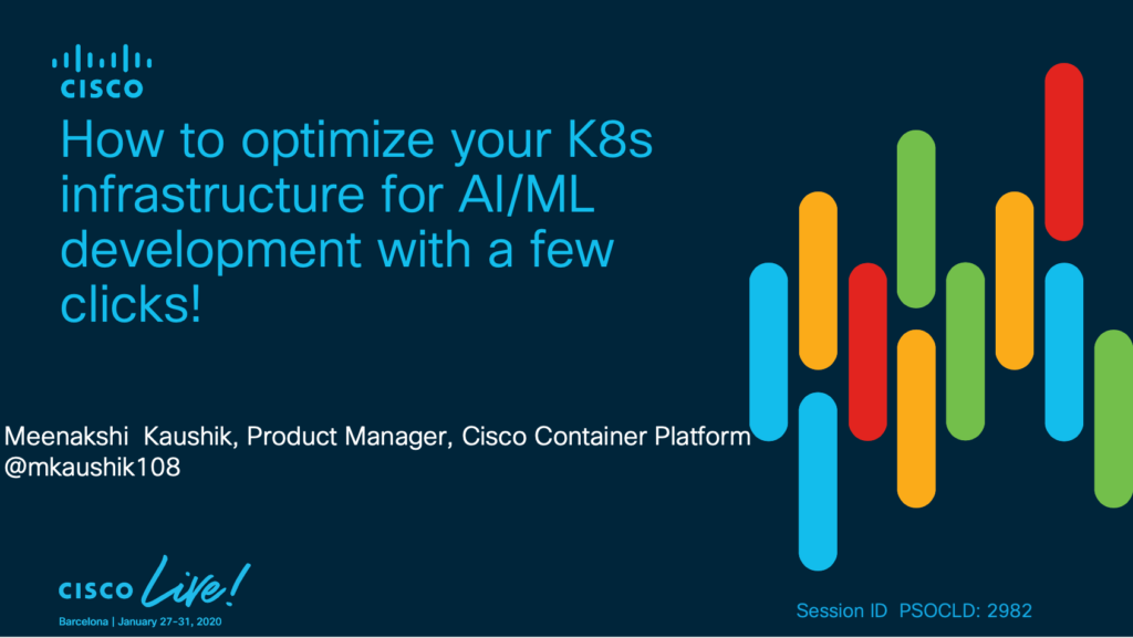 To learn more about building an AI/ML stack on top of Kubernetes and how you can use Cisco Container Platform to enable your data scientists and AI/ML engineers, join me at my Cisco Live! Barcelona session on Thu Jan 30th 1:30 to 2:30 pm.