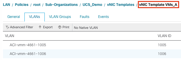 As shown in the screen capture above, ACI assigned VLAN 1004 from the dynamic pool to the newly created port group mapped to our EPG. This is where the wheels fell off previously because the VLAN was not yet defined within the UCS fabric. We can now go back into UCSM to verify.