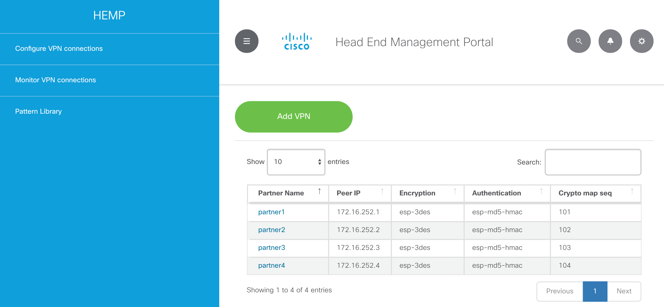 However, partner3 and partner4 VPNs are pre-configured only on the partner/remote side and will need you to provide additional configuration on the headend to complete those VPNs setup.