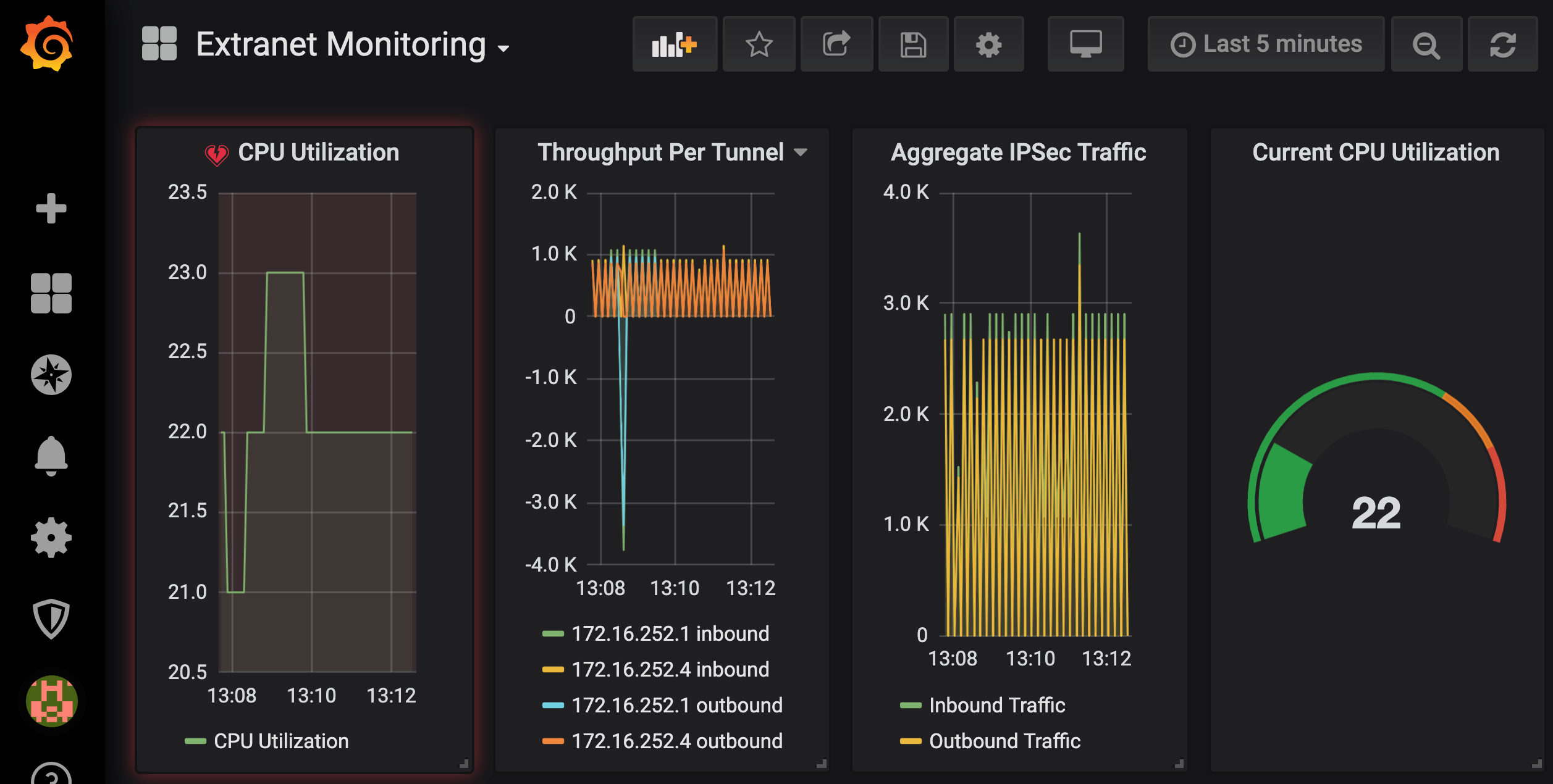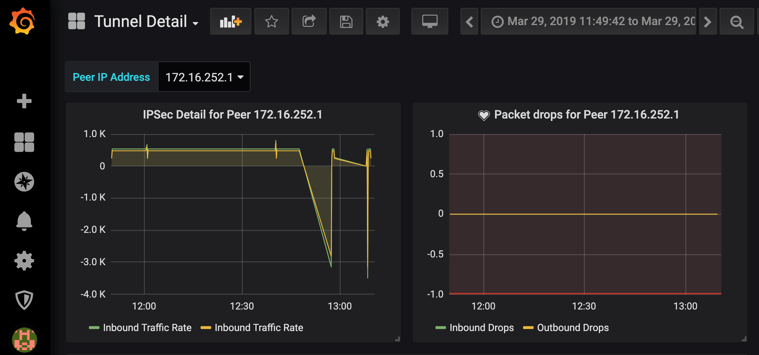 Selecting the Tunnel Detail dashboard will show you information about each specific tunnel, just by choosing the peer IP address: