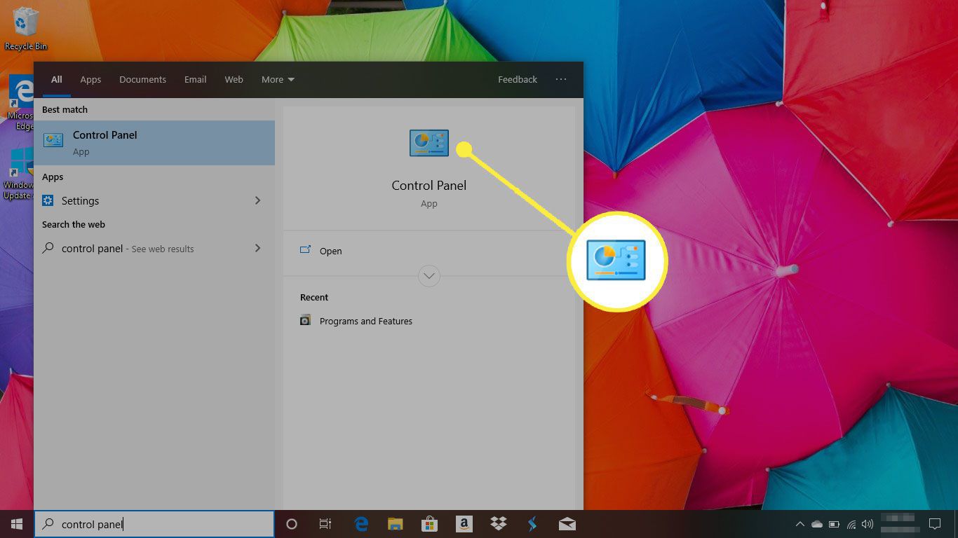 Open Control Panel. Go to Windows Search and search for Control Panel.