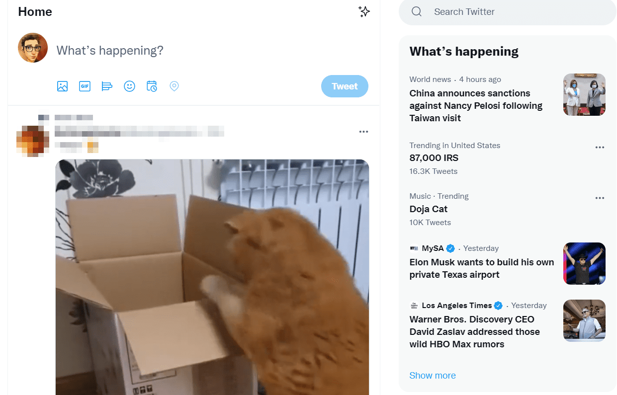 Log in to your account to see the What's happening section off to the right. Listed there are the top stories people are talking about right now. By default, you'll see trends that are tailored to you and your interests.