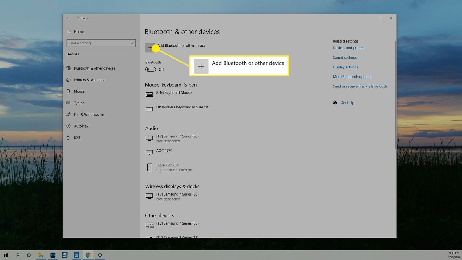 In Bluetooth & other devices click Add Bluetooth or other devices.