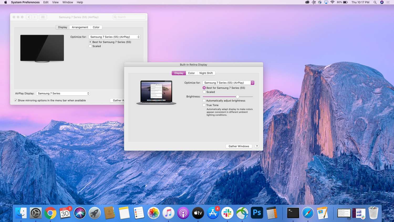 Your laptop will mirror to your TV and an options box will appear where you can change the optimization and brightness for the screen. You can close out of these windows without ending your AirPlay session.