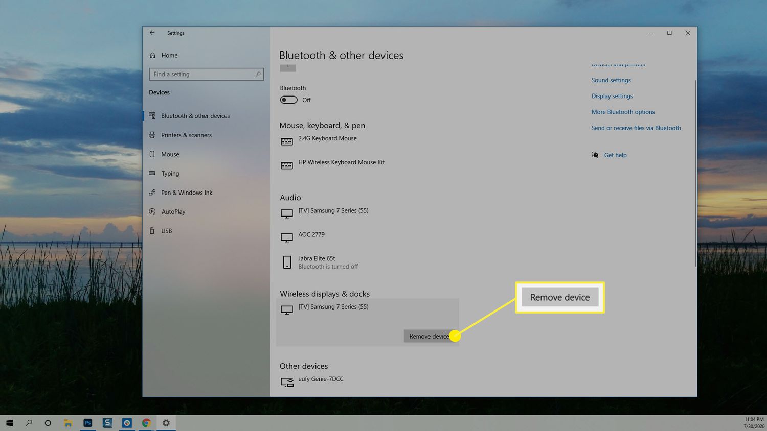 When you're finished mirroring your screen on Windows, you can go back to Settings > Devices and find the name of the TV you're mirroring to. Select it and then click Remove Device. Mirroring will stop immediately.