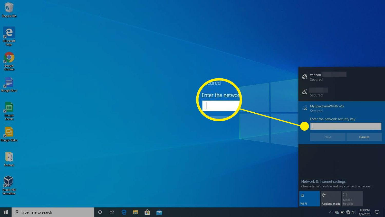 If this is the first time you're connecting to a new home wireless network, you will be asked to type the passkey\network security key that you recorded above from your router's Wi-Fi settings. Select Next to continue.