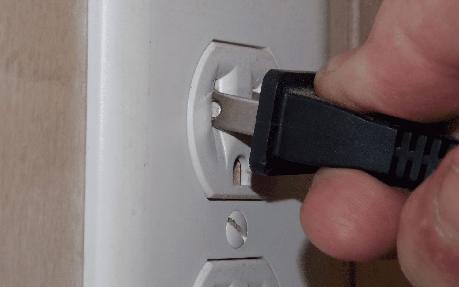 Next, plug the power connector end into the modem. Insert the plug end into a wall power outlet.