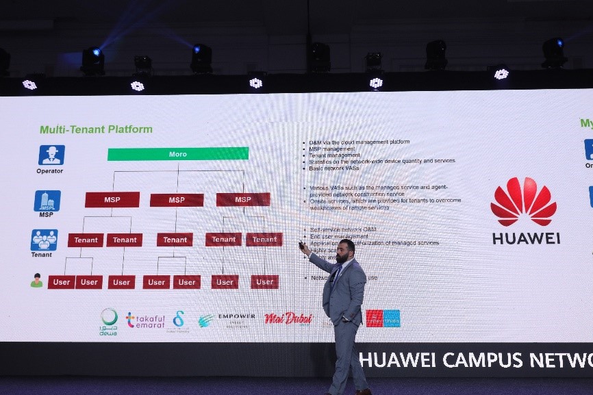 Mr. Ali Aljariri, Senior Manager Digital Products at Moro Hub - a local partner of Huawei - shared their successful practices of cooperating with Huawei in network managed services. Specifically, Moro Hub draws on Huawei's extensive capabilities, such as full-lifecycle management, network-wide plug-and-play devices, minute-level device deployment, cloud-based inspection, and one-click fault diagnosis. In turn, this enables higher efficiency and superior network experience for customers and builds a national multi-tenant cloud-hosted network solution.