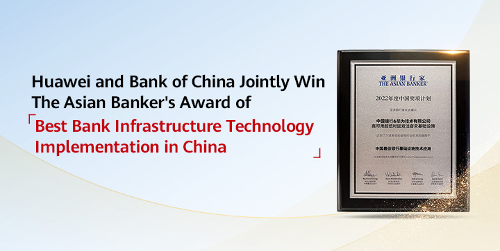 Huawei and Bank of China Jointly Win The Asian Banker's Award of Best Bank Infrastructure Technology Implementation in China