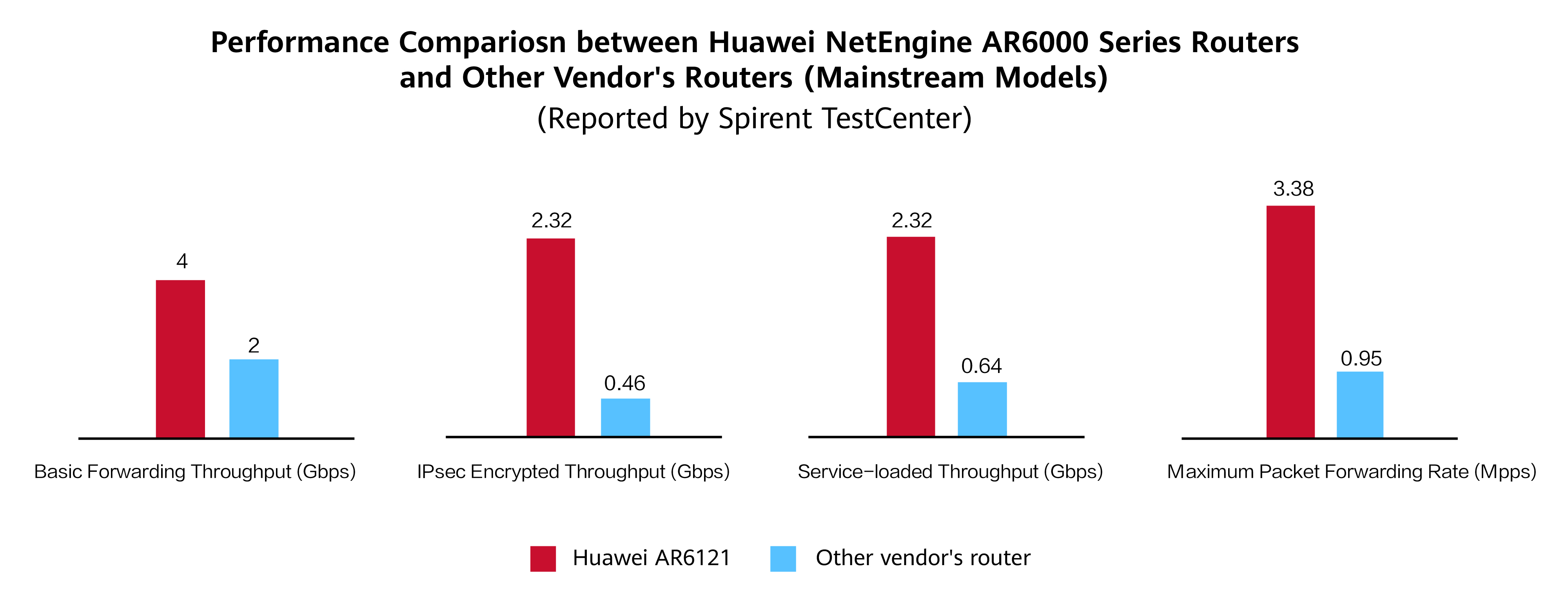 Results of performance comparison tests between Huawei's next-generation NetEngine AR enterprise routers and comparable products