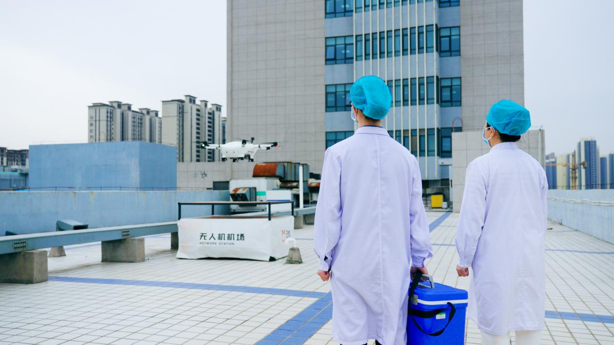 In Anyang, drone takeoff and landing ports and 5G-A ISAC low-altitude networks have been established at key locations such as Anyang Central Blood Station, the People's Hospital of Anyang City, and the Oncology Hospital of Anyang City. The deployment supports three critical medical scenarios: blood delivery, inter-campus hospital material logistics, and citywide medical alliance resource sharing. Among them, route 1 covers 7.5 kilometers from the Anyang Central Blood Station to the People's Hospital of Anyang City, while route 2 covers 1.68 kilometers from the Anyang Central Blood Station to the Oncology Hospital. Along both routes, drone takeoff and landing ports and 5G-A ISAC base stations have been established, creating a secure and reliable lifeline.