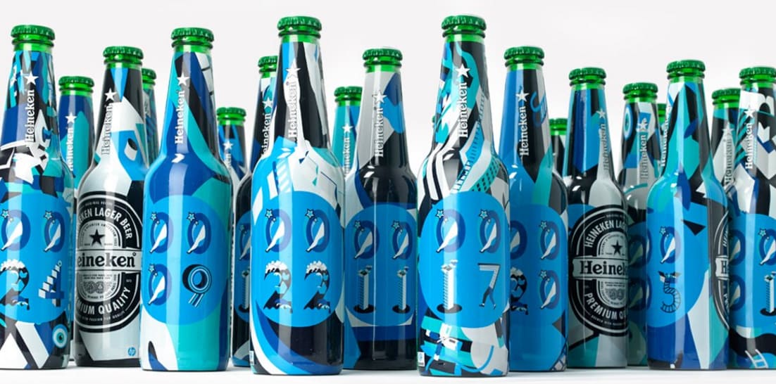 Graphic artist Emily Forgot, and packaging designer, Silas Amos, joined together to create 2000 one-of-a-kind Heineken beer bottles with HP Smartstream Mosaic.