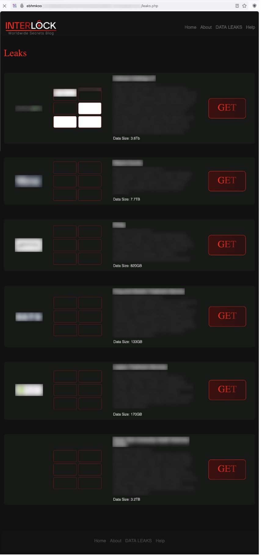 Figure 5: A list of the Interlock ransomware victims on the data leak site