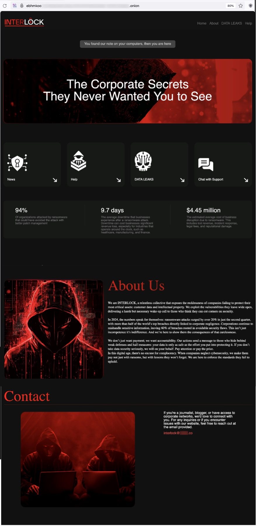Figure 7: Top page of the Interlock ransomware's TOR site