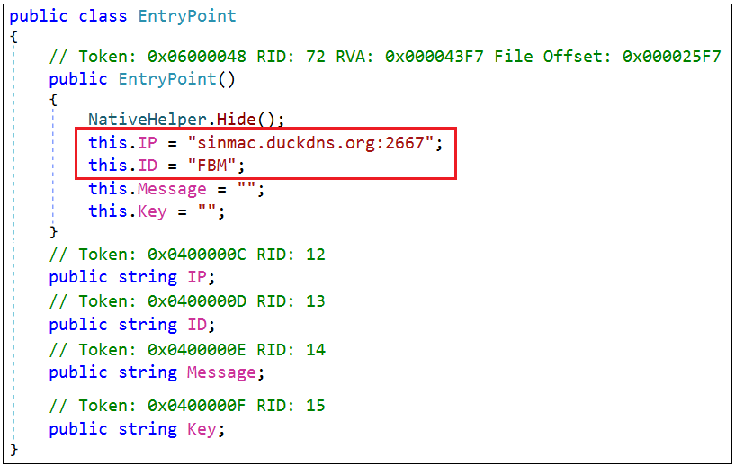 - The second parameter is that the C2 server uses an EndpointAddress object with the C2 server's information. The "address" is the C2 server address defined in a class (see figure 3.1).