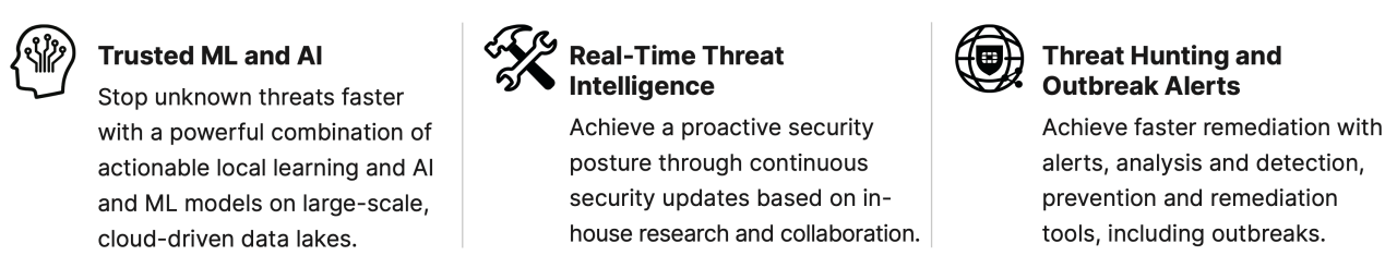 What this means for our customers is real-time threat intelligence, behavior-based detection, automated remediation, protection from known and unknown threats, fewer false positives, and the ability to see, assess, and respond to threats anywhere across your network.