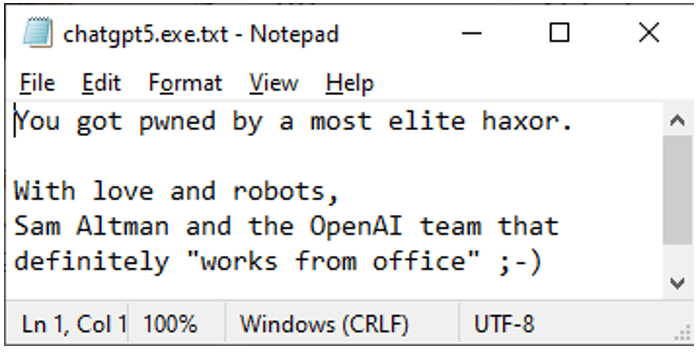 But instead of malware, the zip archive contains an innocuous text message: