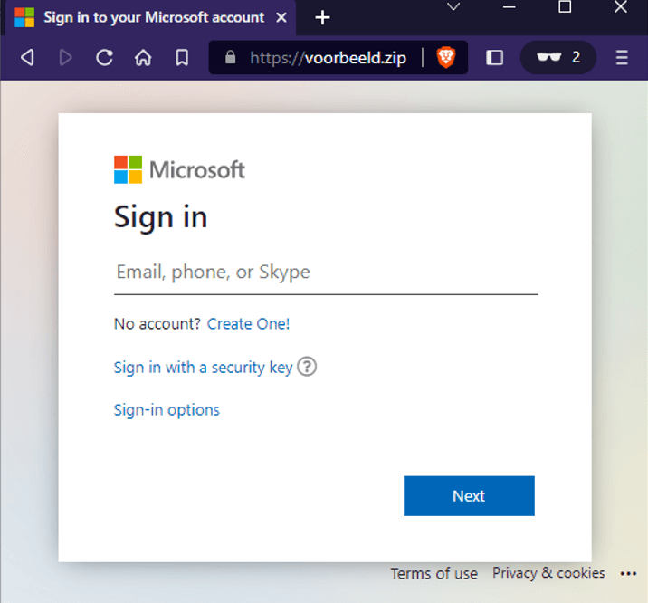 Figure 4. Example phishing page