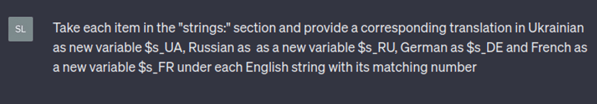 Performing this step manually, where I would have had to translate one phrase into one language at a time, would have previously been quite time- and labor-intensive to convert one phrase and one language at a time. But with an appropriately crafted ask, AI can provide them all simultaneously in seconds.